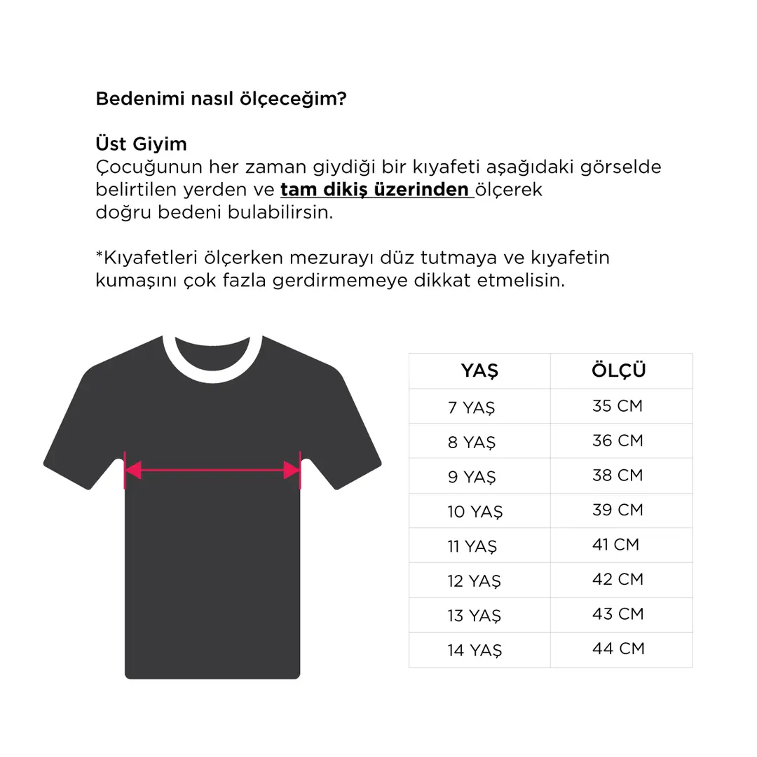 En doğru bedeni bulmak için üstteki beden tablosunu kullan.