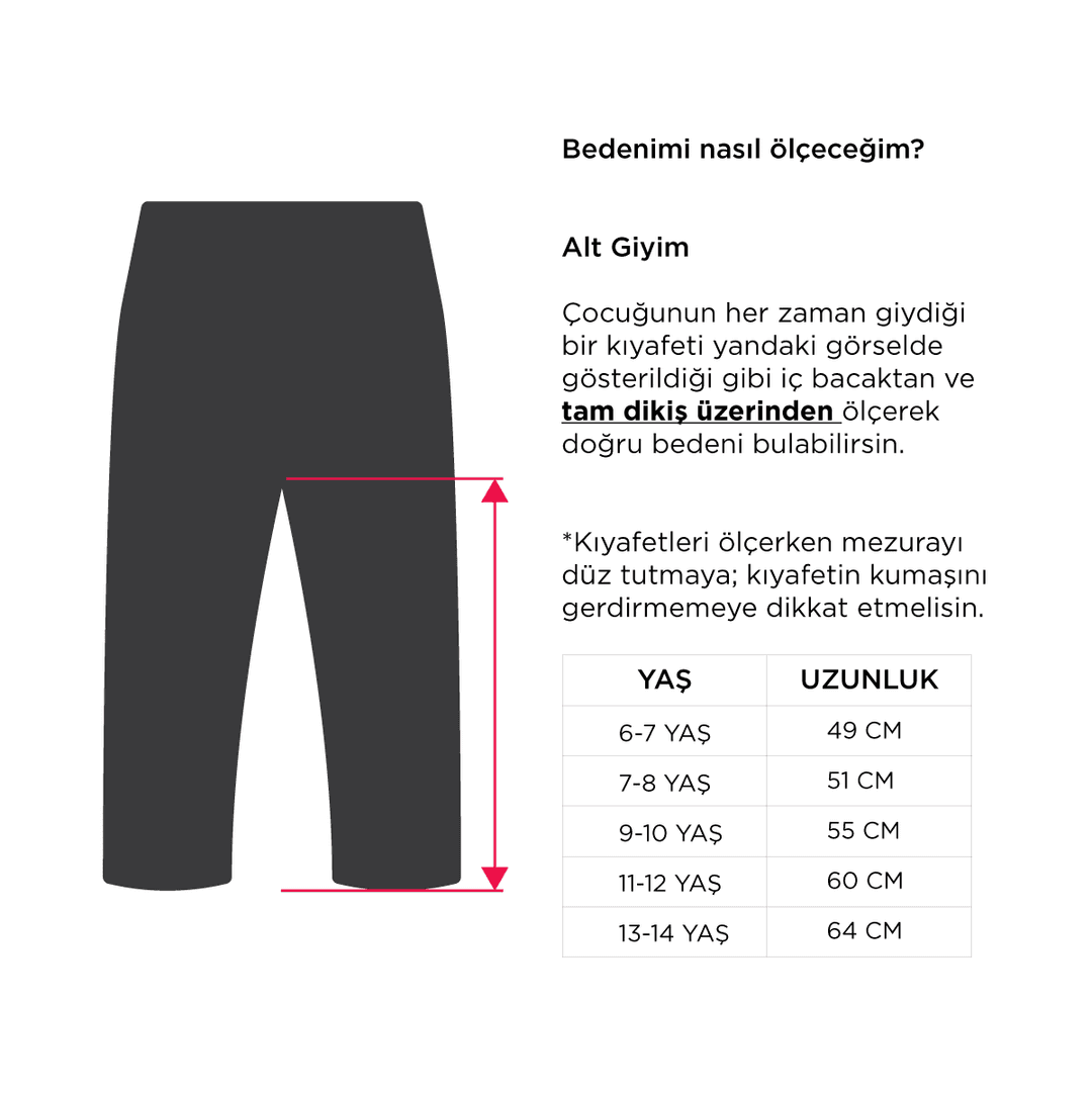 2 iplik kumaştan üretilen eşofman altı, beli ve paçaları lastikli özellikleri ile rahat bir oturuş ve hareket özgürlüğü sağlar. Okulda ve günlük olarak kullanılabilir, yan cepleri bulunmaktadır. Yumuşak ve esnek yapısı, çocuğunuzun gün boyu rahat etmesini sağlar.