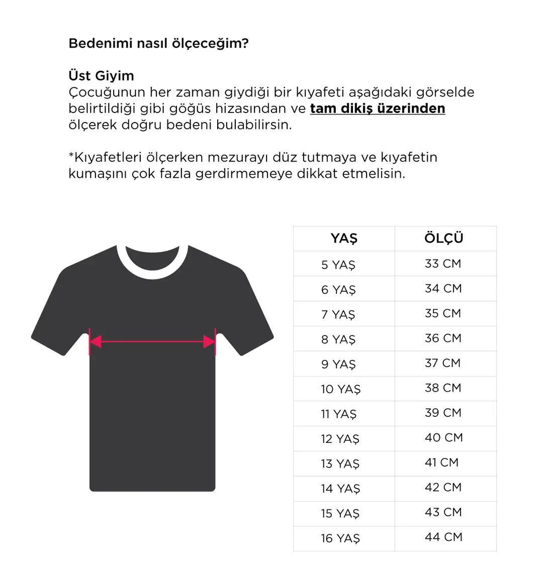En doğru bedeni bulmak için üstteki beden tablosunu kullan.